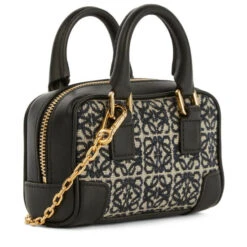 Loewe’s Amazona Nano tote is a miniature version of a classic in the house’s offering. This square-shaped iteration is made from navy-blue Anagram jacquard canvas and trimmed with black calfskin leather, while the attachable chain strap ensures hands-free wear.