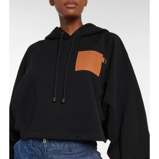 Loewe amplifies your off-duty edit with this black cotton fleece hoodie. The cropped style has relaxed raglan sleeves and an Anagram logo leather plaque for instant recognition.