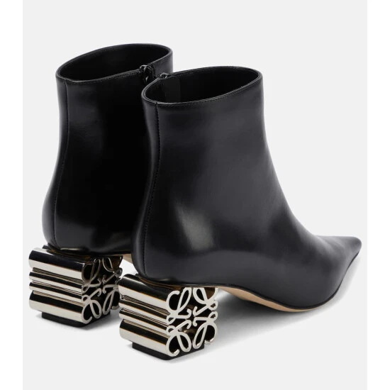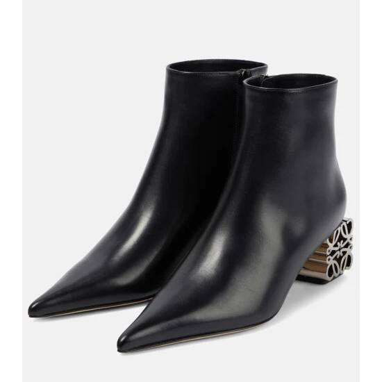 Set on metal Anagram heels, these ankle boots from Loewe are made from leather and have elongated, pointed toes.