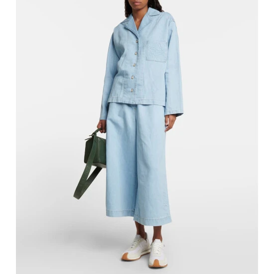 This blouse from Loewe is made from cotton and linen denim in an oversized silhouette with dropped shoulders, long sleeves, and a spread collar. It showcases the house Anagram on a front patch pocket.