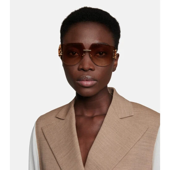 These sunglasses from LOEWE are fitted with hazy gradient tinted lenses that exude retro flair. Made in Italy with slender gold-tone metal frames, they have a geometric silhouette with Anagram logo-adorned temples.