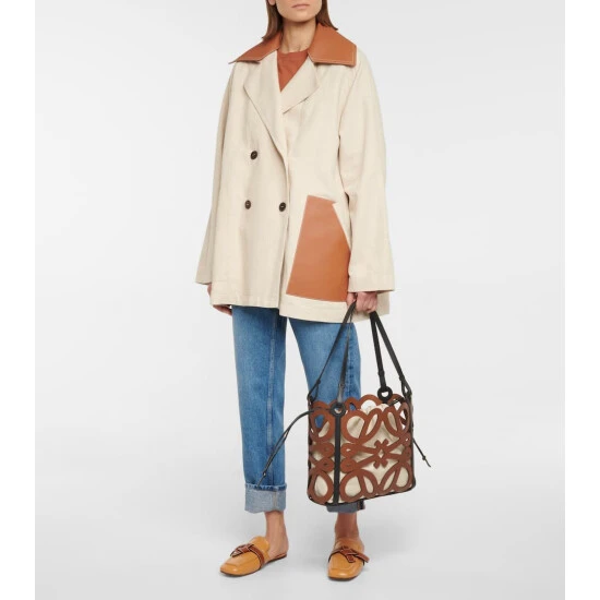 LOEWE’s Anagram logo, a house signature since the ’70s, takes the form of contemporary cutouts on this brown tote. Made in the label’s Spanish atelier by skilled artisans, this compact style has an open-top silhouette with an inner drawstring pouch in herringbone cotton canvas.
