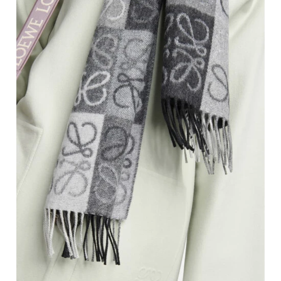 Envelop yourself in this soft wool and cashmere scarf with subtle logo branding from Loewe. This intarsia-knit checkerboard design features the brand’s ornate Anagram motif and fringed edges.