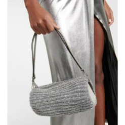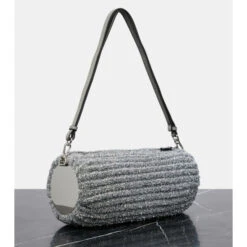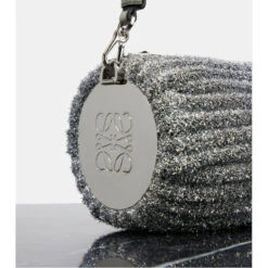Loewe’s Bracelet bag is the fashion crowd’s latest favorite. The tubular design is made from pleated silver Lurex® for a fuzzy finish with Anagram plaques on each end, and features a detachable leather shoulder strap.