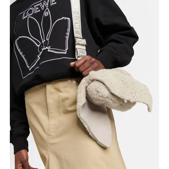 This bunny-shaped shearling bag is from Loewe’s Year of the Rabbit collection. Featuring an Anagram jacquard strap and pom-pom tail, it’s handcrafted in Spain using the house’s centuries-long expertise and artisanal methods.