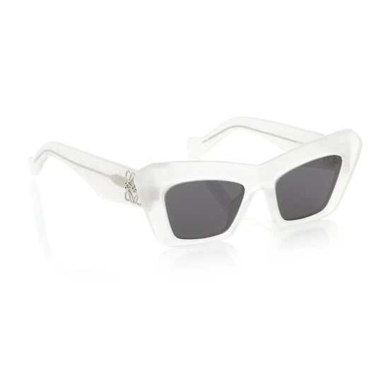For your eyes only: these sunglasses from LOEWE will lend an enigmatic finish to any look. Made in Italy from transparent white acetate, they have a fierce cat-eye shape with gray lenses and the iconic Anagram in silver-tone hardware at the temples.