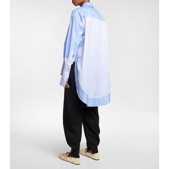 Loewe adds intrigue to the classic collared shirt with a colorblocking effect featuring two complementary tones of blue. Made in Italy from pure cotton, this piece has a voluminous silhouette, dropped shoulders, and concealed buttons.