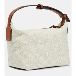 Loewe’s Cubi Small tote is completely foldable, making it the perfect packing partner. It’s handmade from white Anagram jacquard canvas with leather trims and an adjustable strap that will fit over the shoulder.