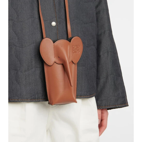 Loewe’s latest addition to its animal menagerie is the Elephant Pocket crossbody bag. Made from brown calf leather with contrasting black edges, this compact design has a magnetic fastening and card slot at the back.