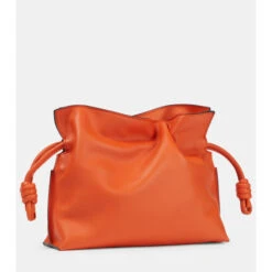 Loewe pays tribute to Iberian culture with the Flamenco Chain clutch, crafted by hand in Spain using traditional techniques. It’s made from bright orange leather with hand-painted edges, iconic drawstring knots, and a golden chain.