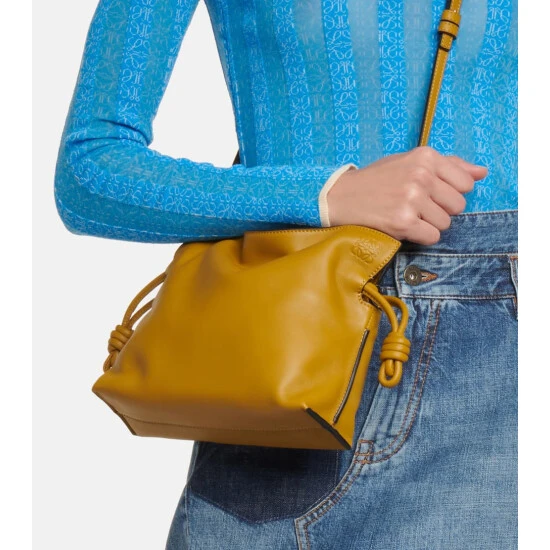 The Flamenco Mini clutch from Loewe is an effortlessly cool option for evening occasions. Crafted in Spain from ochre leather, it cinches in at the top using drawstring ties and can carry your essentials.