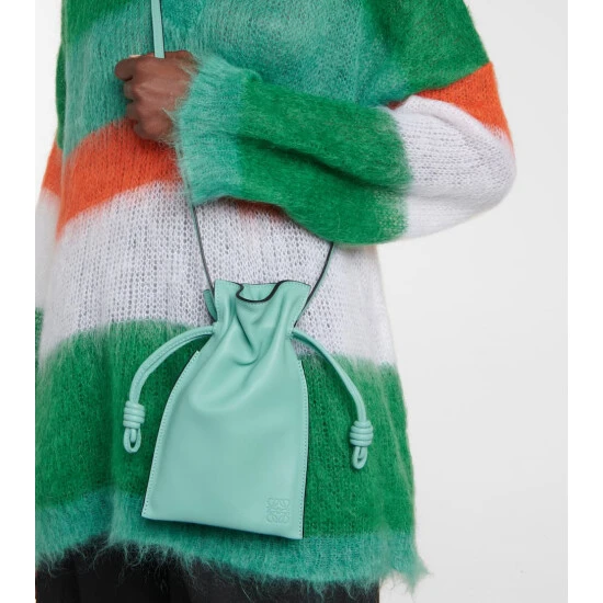 Scaled-down accessories show no signs of dispersing, as the Flamenco Pocket bag from Loewe demonstrates. It’s handmade in Spain from leather with signature Anagram embossing and a gathered pouch-like closure.