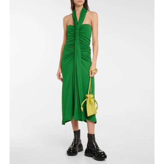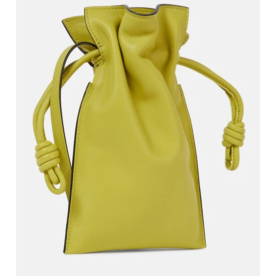 Micro accessories show no signs of dispersing, as the Flamenco Pocket shoulder bag from Loewe demonstrates. It’s handmade in the label’s Spanish atelier from supple lime-green leather with signature Anagram embossing, knotted handles and a gathered pouch-like collar.