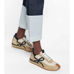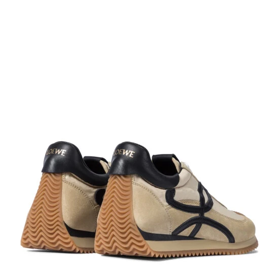 LOEWE is known for its leather craftsmanship, which sets these exceptional Flow Runner sneakers apart from the rest. Made from panels of beige suede and technical fabric, they have black leather L appliqués at the lateral side. Wear yours with top-to-toe neutrals for a color-coordinated look.
