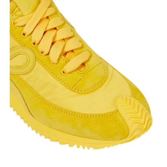 Stroll into a new season with the Flow Runner sneakers by Loewe. Made from suede in Italy, this style has rubber wave soles that curve around the shoes and L monograms on the sidewalls.