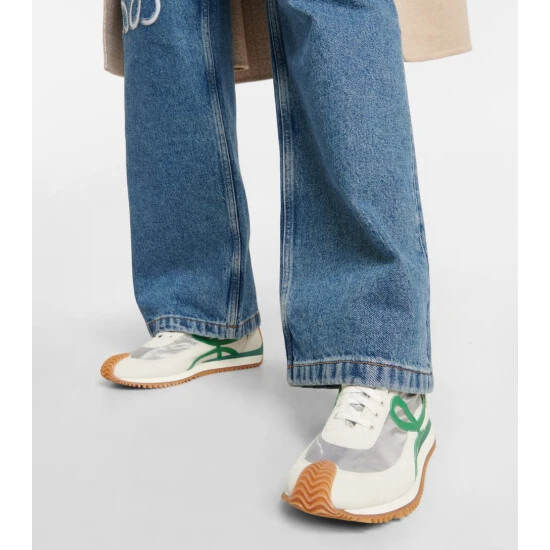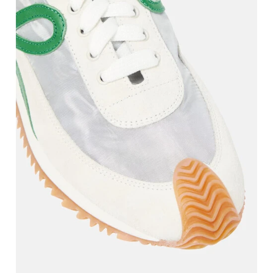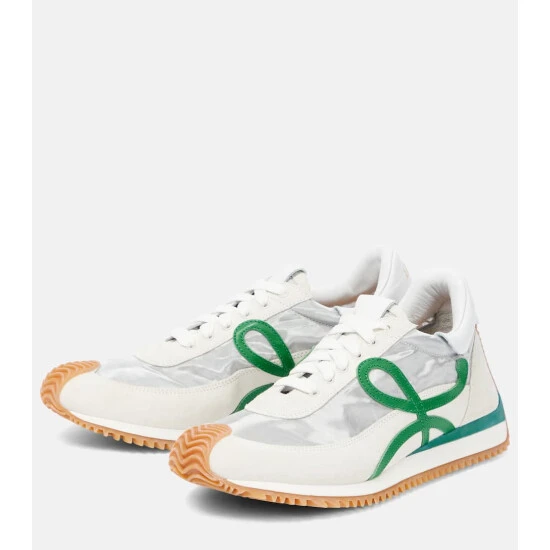 Loewe is known for its leather craftsmanship, which sets these Flow Runner sneakers apart from the rest. Made from panels of white suede and silver-toned technical fabric, they have green leather “L” patches at the sides, and grooved rubber soles that curl around the toes and up the backs of the heels.