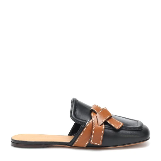 Fans of LOEWE will instantly recognize the artful knots that adorn the Gate leather slippers. Made in Italy, this square toed, slip-into style features topstitched tan leather trims. Pair yours with its namesake bag for a brand-loyal look.