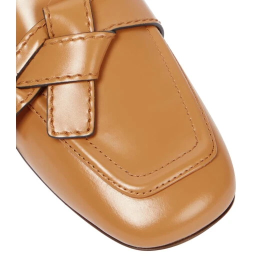 Fans of Loewe will instantly recognize the artful knots that adorn the Gate leather slippers. Made in Italy, this square toed, slip-into tan style features topstitched leather trims.