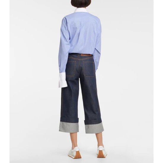 These cropped jeans from Loewe are perfect for daily wear. The high-rise design is made from durable cotton denim in a dark-blue wash, featuring turn-up hems and a logo-embossed leather patch.