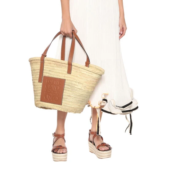 There’s no better way to adopt the rustic-chic trend than Loewe’s large basket bag. Hand-woven in Spain from palm leaves with tan-brown leather accents, it has adjustable top handles and an anagram-embossed appliqué. Carry yours on city streets and sandy beaches to add artisanal charm to your looks.