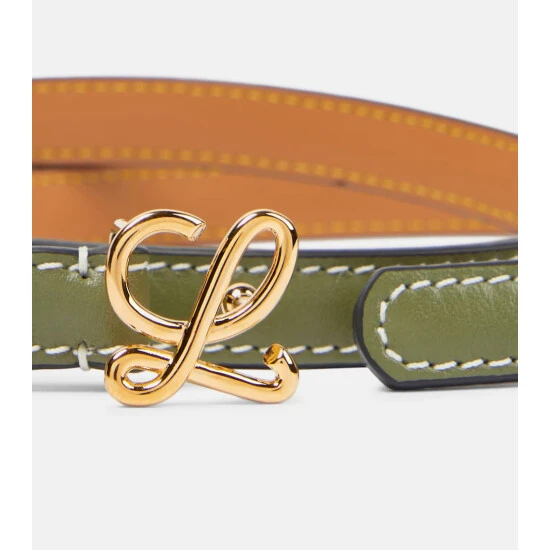 Finish any look elegantly with this slim belt from Loewe. It’s made in the brand’s Madrid atelier from smooth avocado green leather, and accented with contrast topstitching and a golden monogram push buckle.