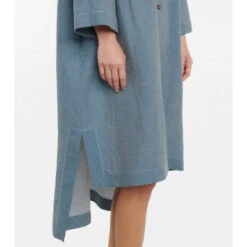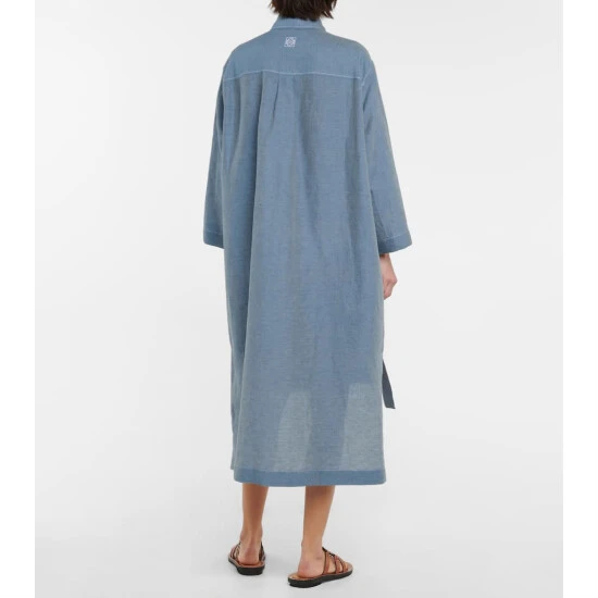 Loewe brings signature off-kilter proportions to a classic shirt style to design this midi dress. Cut from a linen and cotton blend in a denim wash, the oversized silhouette dips lower at the back.
