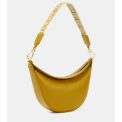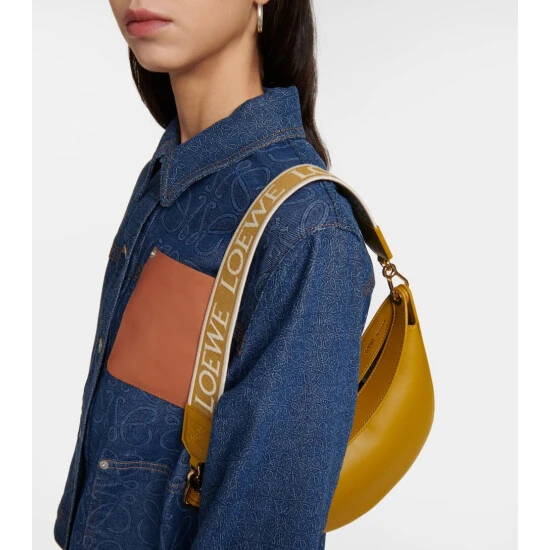 Look to Loewe’s Luna shoulder bag for a modern and sophisticated silhouette. This small iteration of the half-mooned shape design is crafted in ochre leather with a logo jacquard strap.