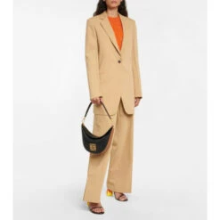 Look to Loewe’s Luna shoulder bag for a modern and sophisticated silhouette. This small iteration of the half-mooned shape design is made from calf leather -sporting a contrast-color base- and finished with golden Anagram hardware.