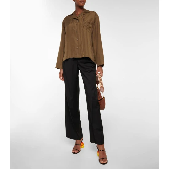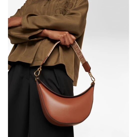 Look to Loewe’s Luna shoulder bag for a modern and sophisticated silhouette. This small iteration of the half-mooned shape design is crafted in brown leather with a logo jacquard strap.
