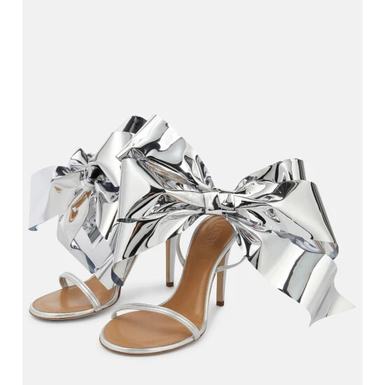 Loewe’s eagerly anticipated bow sandals are here. Defined by their oversized structured metallic bows, the pair is made from supple leather with delicately buckled ankle straps and sit atop high stiletto heels.