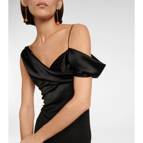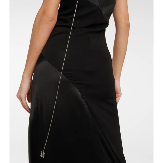 The sculptural elegance of this maxi dress is testimony to Loewe’s artful vision. Appearing with an asymmetric off-shoulder neckline, this flowing piece has paneled detailing to the bodice and a draped fishtail hem.