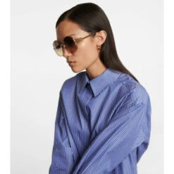 Go incognito with these oversized golden sunglasses from Loewe. The ’70s-inspired pair have reflective tinted lenses, and signature Anagram hardware at the temples. Please note the color of the case may vary.