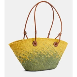 The colorful basket tote from Loewe’s Paula’s Ibiza collection is primed for beach visits and boulevard strolls. Made from iraca palm, it’s accented with a leather Anagram emblem.