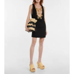 The Flamenco Small clutch represents everything we love about Loewe’s Paula’s Ibiza collaboration. It’s made from raffia woven in beige and black stripes and features a ruffled top and knotted leather drawstring ties.