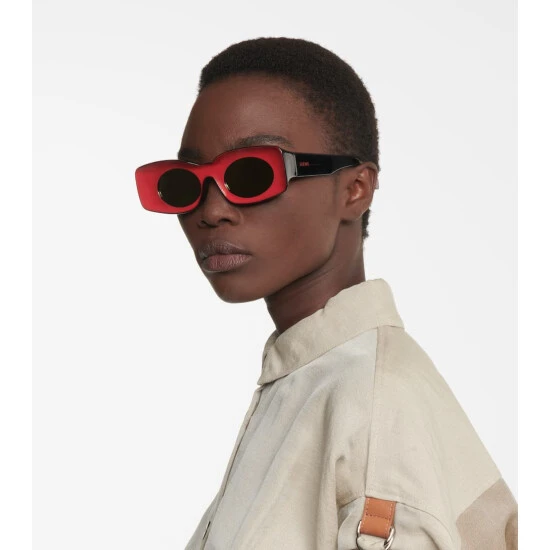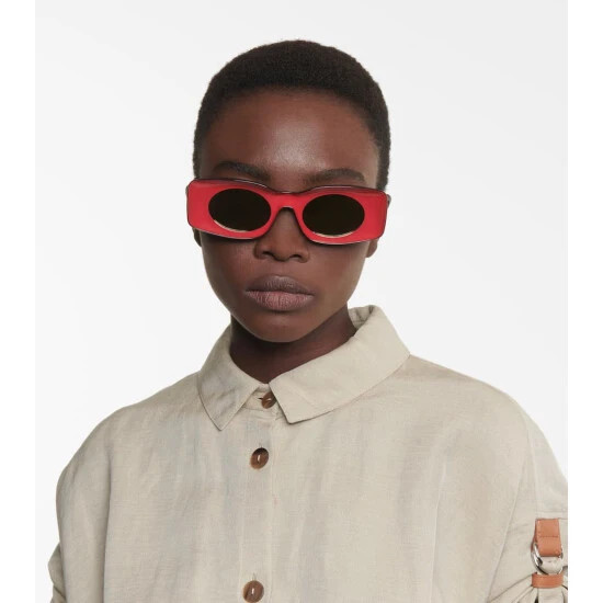 Make these distinctive black and red sunglasses from LOEWE’s Paula’s Ibiza collection the centerpiece of your summertime ensembles. Made from black acetate with red oval frames, they feature category 3 gold-tone tinted lenses and logo detailing at the temples. Store in their grained leather protective case when not in the sun. Please note the color of the case may vary.