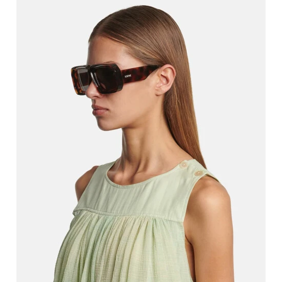 Frame your face in the retro-informed charm of these brown tortoiseshell sunglasses from LOEWE’s collaboration with Paula’s Ibiza. Made from durable acetate, the square framed pair features dark-tinted lenses that protect against harmful UV rays. Store in their protective case when not in the sun. Please note that the color of the case may vary.