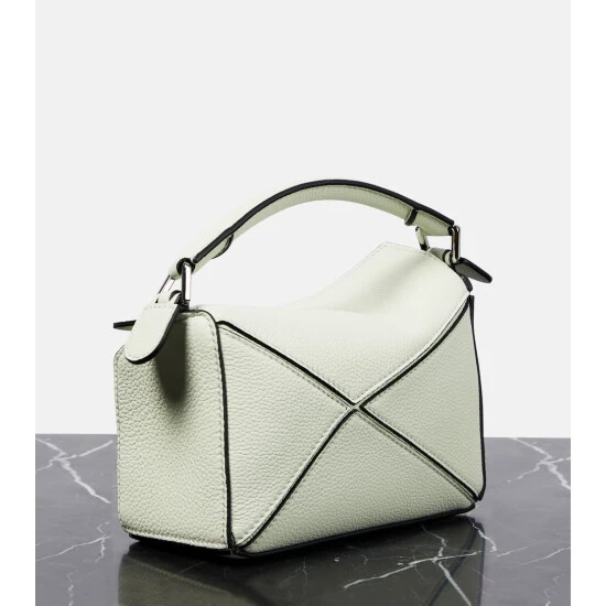 Loewe’s best-known bag family, the Puzzle, welcomes a new member: this Mini shoulder bag. Demonstrating what happens when expert craftsmanship and innovative design come together, it’s made by artisans in the brand’s Madrid atelier from geometrically cut, asymmetrically set panels of grained calf leather. For clever styling, it can be carried in five ways: over the shoulder, across the body, on the back, in-hand or, because the leather is easily manipulated, as a clutch.