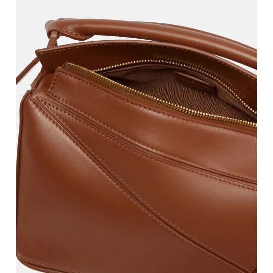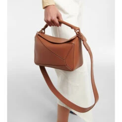 Loewe’s best-known bag family, the Puzzle, welcomes a new member: this shoulder bag. Demonstrating what happens when expert craftsmanship and innovative design come together, it’s made by artisans in the brand’s Madrid atelier from geometrically cut, asymmetrically set panels of satin calf leather. For clever styling, it can be carried in five ways: over the shoulder, across the body, on the back, in-hand or, because the buttery leather is easily manipulated, as a clutch.