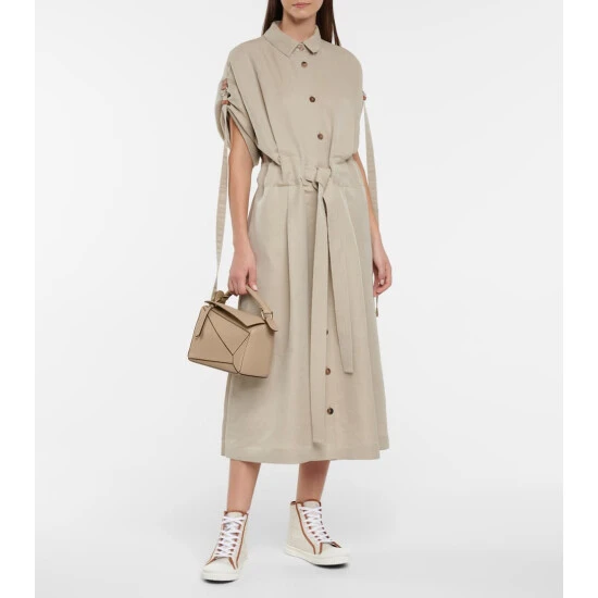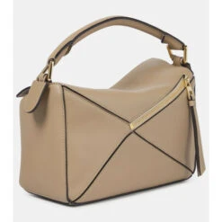 LOEWE’s best-known bag family, the Puzzle, welcomes a new member: this sandy beige Small shoulder bag. Demonstrating what happens when expert craftsmanship and innovative design come together, it’s made by artisans in the brand’s Madrid atelier from geometrically cut, asymmetrically set panels of grained calf leather. For clever styling, it can be carried in five ways: over the shoulder, across the body, on the back, in-hand or, because the buttery leather is easily manipulated, as a clutch.