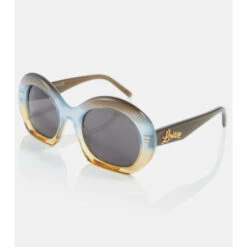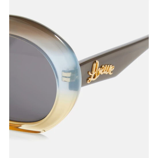 Loewe’s off-kilter take on shapes manifests in designs like these multicolored sunglasses. Made from translucent acetate, this oversized pair features gray-tinted lenses and wide temples adorned with the label’s script logo in golden metal.
