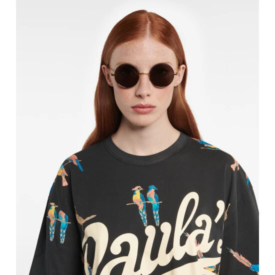 Evoke a distinctly ’60s mood with these brown and gold-toned sunglasses from LOEWE. Their distinctive round frames are barely perceptible, meaning your admirer’s focus remains on the tinted lenses. Style them with a brightly printed headscarf and golden hoop earrings.