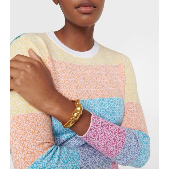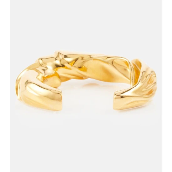 This arm cuff from Loewe is designed with irregular twists that emphasize the beauty of imperfection. It’s made from brass and is engraved with logo lettering on one end.