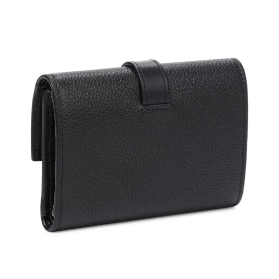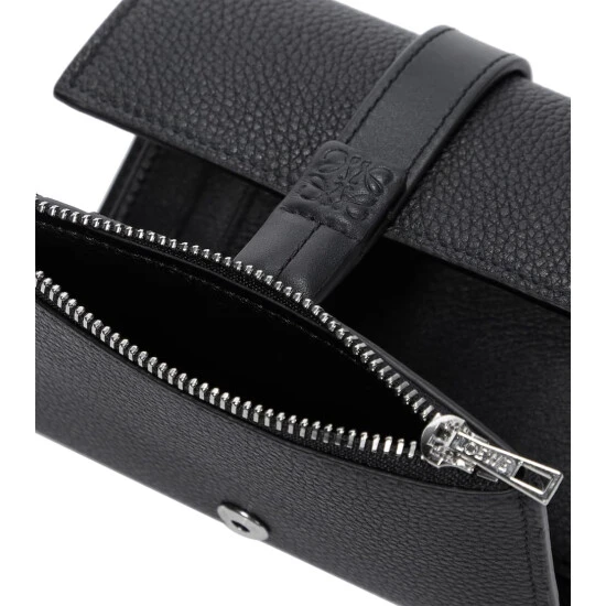Store essentials in the unparalleled quality of LOEWE with this wallet, arriving in timeless black. Made from grained leather, the foldover silhouette secures with a logo-embossed single strap; and features numerous card slots and additional zipped and slip pockets. Slot yours into one of the label’s coveted Puzzle shoulder bags.