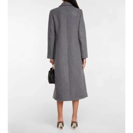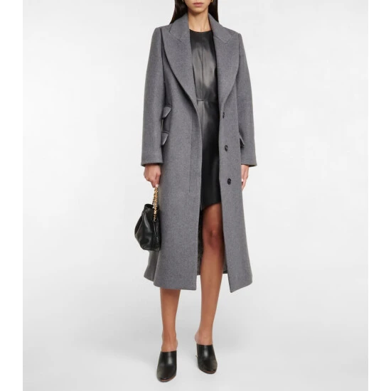 This longline coat from Loewe is made from double-faced wool. It’s finished with peak lapels, flap pockets, and can be adjusted via a concealed internal belt.
