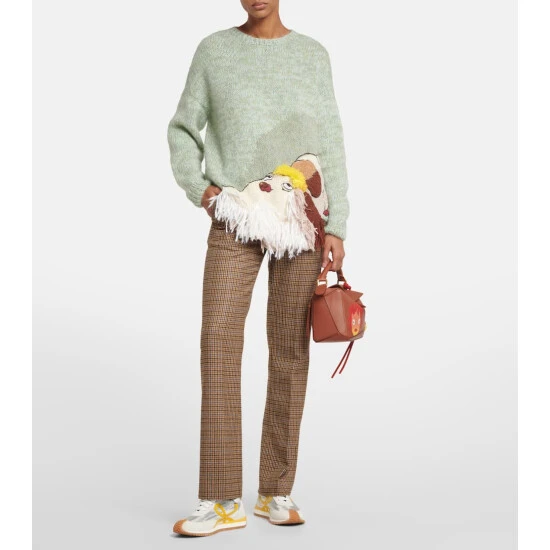 A tribute to the film Howl’s Moving Castle, the latest collaboration between Loewe and Studio Ghibli celebrates a shared love of craft and imagination. These high-rise, slim pants are made from pure wool in a checked pattern that pulls together colors from the wider collection.