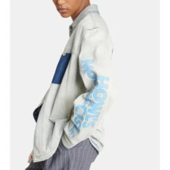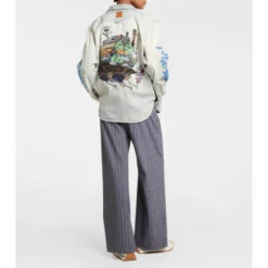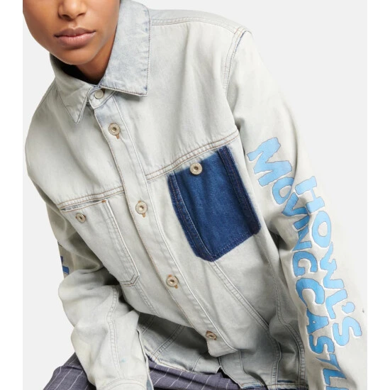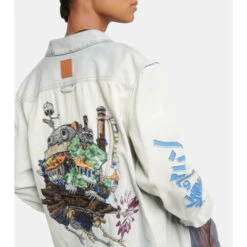 A tribute to the film Howl’s Moving Castle, the latest collaboration between Loewe and Studio Ghibli celebrates a shared love of craft and imagination. This acid-washed, faded denim shirt jacket features logo lettering along the sleeves and a beautifully embroidered depiction of the Wizard Howl’s castle on the back.