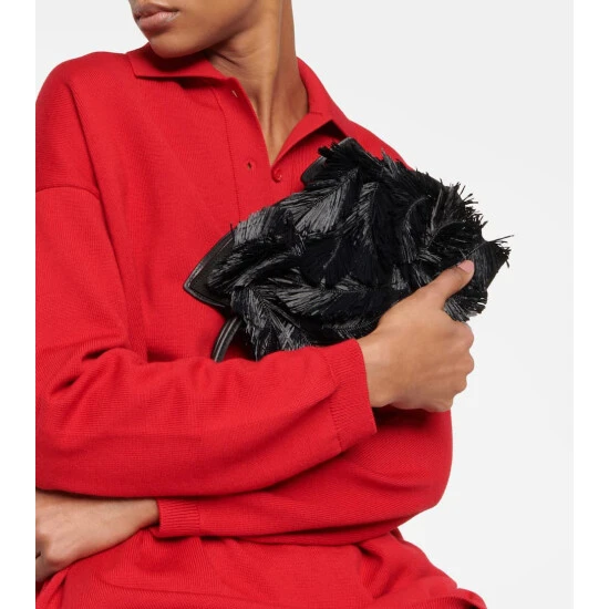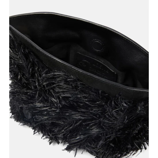 A story from one of cinema’s greatest enchanters, the film Howl’s Moving Castle is skillfully brought to life in a final capsule from Loewe and Studio Ghibli. This limited iteration of the Flamenco Mini clutch is made from leather with raffia trims that are meticulously crafted to resemble the wizard Howl’s feathers.