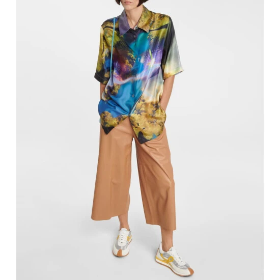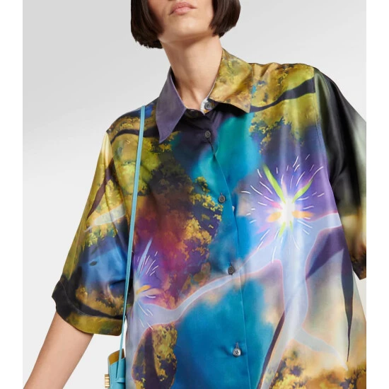 A tribute to the film Howl’s Moving Castle, the latest collaboration between Loewe and Studio Ghibli celebrates a shared love of craft and imagination. This short-sleeved shirt is made from silk printed with a marvelous image of dancing star children.