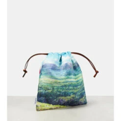 A tribute to the film Howl’s Moving Castle, the latest collaboration between Loewe and Studio Ghibli celebrates a shared love of craft and imagination. This drawstring pouch secures with signature knotted leather straps and is made from canvas with an illustration of beloved characters Sophie and Calcifer.