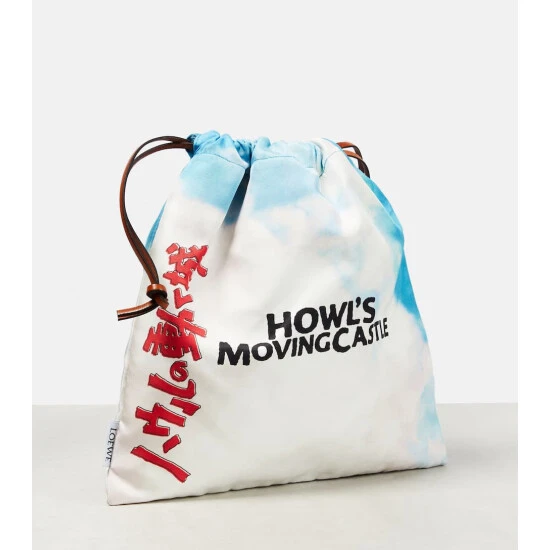 A tribute to the film Howl’s Moving Castle, the latest collaboration between Loewe and Studio Ghibli celebrates a shared love of craft and imagination. This drawstring pouch secures with signature knotted leather straps and is made from canvas with an illustration of Wizard Howl’s castle.